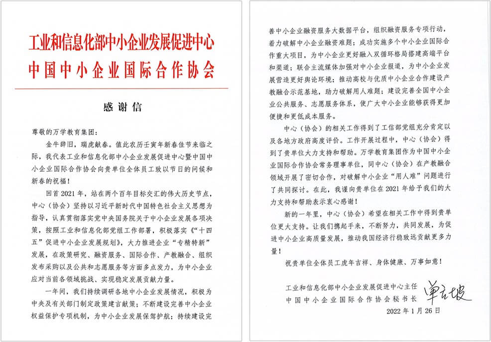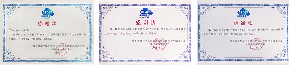 2020,万学由于在大学生教育多个领域的杰出成果,在更高层次荣获了中国教育行业的重量级荣誉,为多多28颁发了重磅感谢状。