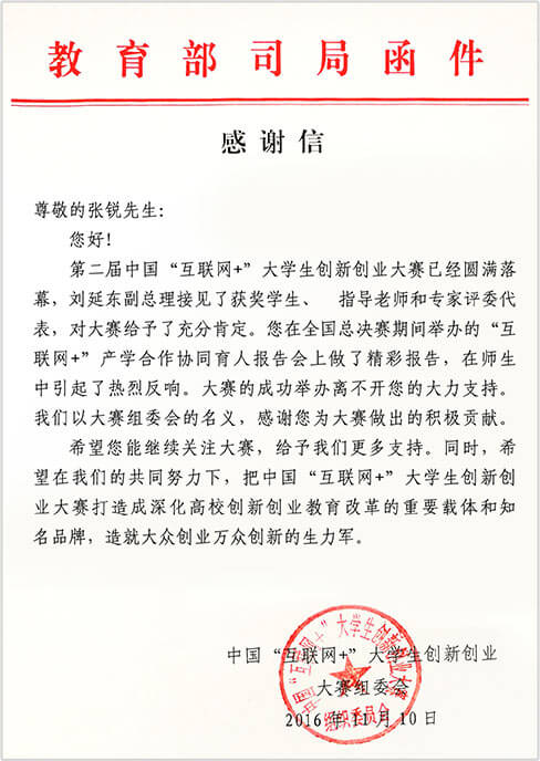 • 2018年,多多28连续多年为中国国际互联网+大学生创新创业大赛做出积极贡献,获教育部来函致谢。